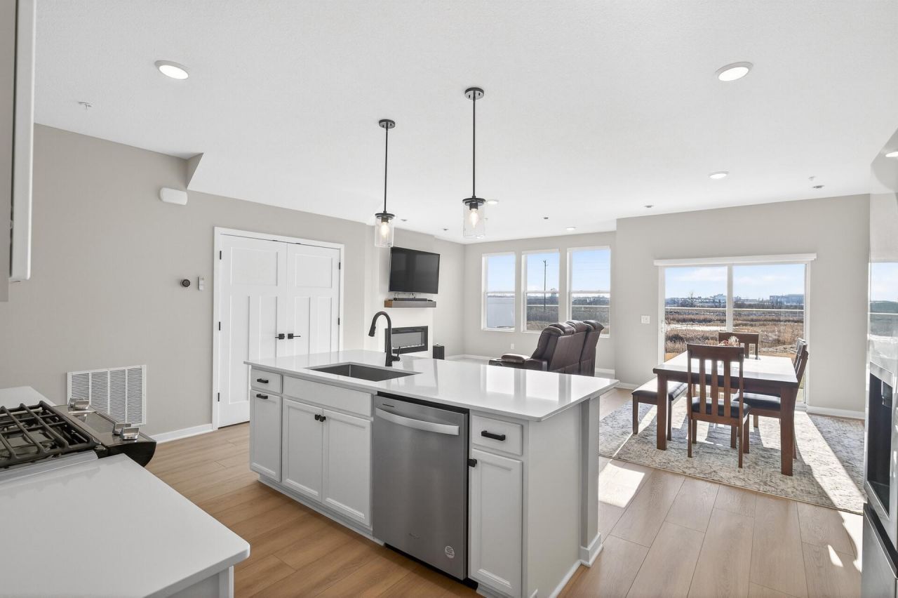 Skip the wait and step into like-new construction that's already complete?and upgraded beyond what new builds offer!Located in the highly desirable Rush Hollow neighborhood of Maple Grove, the Ashton floorplan by Pulte Homes offers 1,883 finished square feet and is only available due to relocation. You'll love the white oak-style LVP flooring, black fixtures & hardware, upgraded carpet & pad, upgraded kitchen sink & faucet, modern electric fireplace, plus a ceiling fan installed in the primary bedroom for added comfort.The open main level features a large kitchen with quartz countertops, tile backsplash, stainless steel appliances, pantry, center island & pendant lighting. You'll love the private patio off the dining area overlooking green space & wetlands. Upstairs you'll find that all three bedrooms are on the same level, plus a convenient laundry room. The spacious primary includes a walk-in closet and ensuite bath with double bowl vanity and large shower, while the secondary full bath also features a double vanity.Unlike new construction, this home already includes the refrigerator, washer & dryer, cabinet hardware, elongated toilets, handheld shower heads, a Google Nest smart thermostat, and beautiful custom 'smart window treatments. The association covers exterior maintenance, hazard insurance, lawn care, snow removal, sanitation & professional management?truly turnkey, easy living!Conveniently located just minutes from Arbor Lakes shopping, dining, and entertainment, as well as Elm Creek Park Reserve with miles of trails, parks, and outdoor recreation.