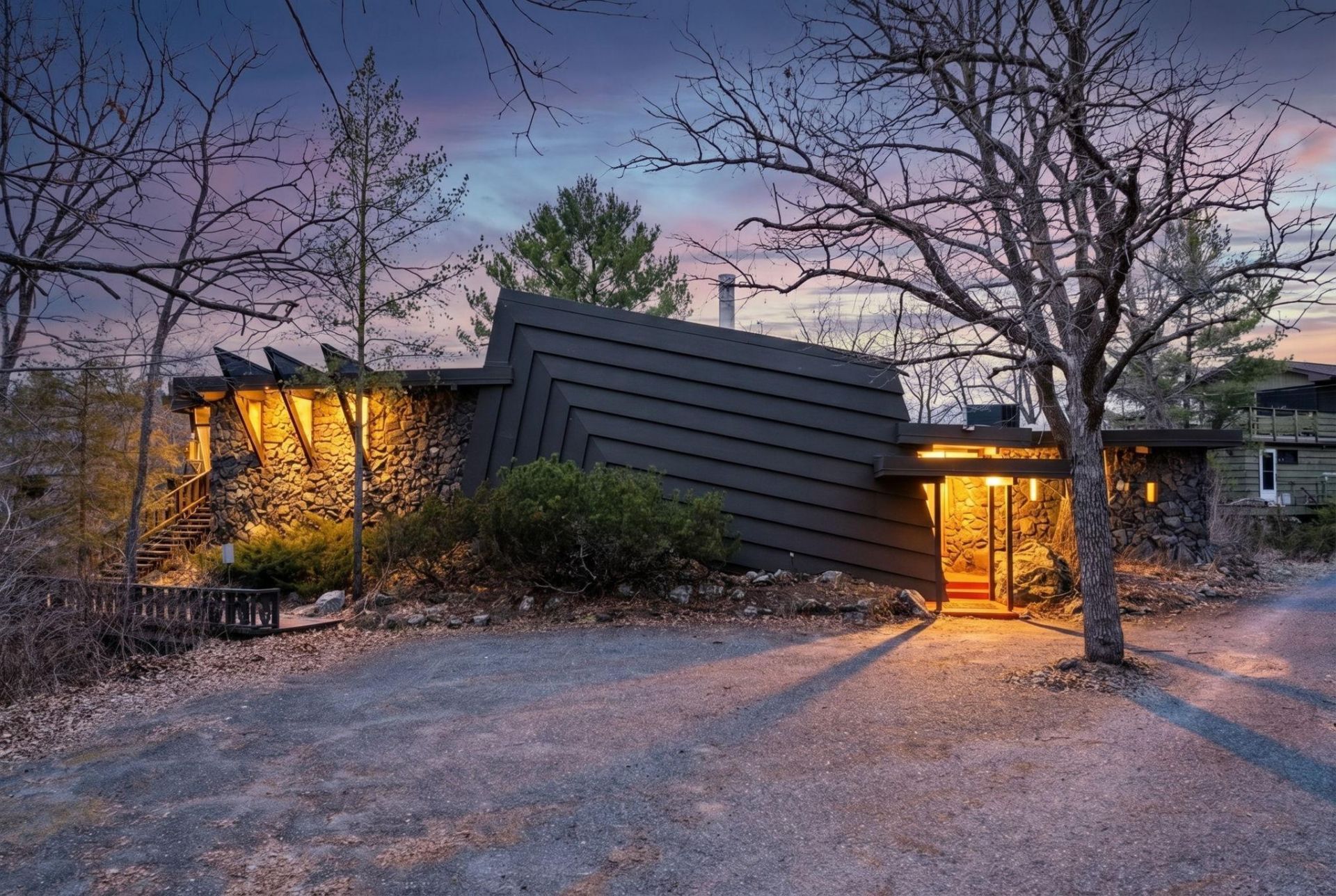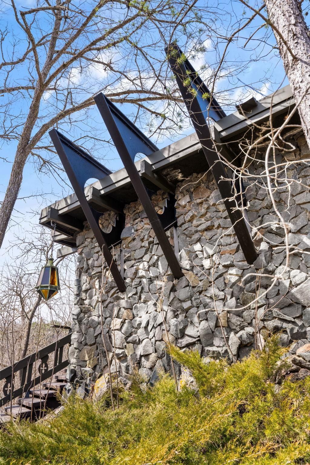 Architect-designed by Arthur Svendsen, this mid-century inspired home offers a rare blend of natural materials, dramatic lines, and a private, elevated setting. Expansive windows and exposed beams define the main living space, while a circular kitchen island and statement fireplace create a natural gathering point. The primary suite features a Malm fireplace, adding warmth and architectural character. Enjoy the surrounding landscape from the oversized deck and screened porch. Newer upgrades include roof, furnace, washer and dryer, and driveway. Since purchase, over $100,000 has been thoughtfully invested in brand new Andersen windows throughout and comprehensive whole-home electrical updates, including a new main panel completed by a licensed professional, fresh paint and carpet. Ownership includes a 10% interest in Rockpile Commons, featuring a shared pond with fountain and 1.58 acres of natural space. Ideally positioned to enjoy the St. Croix River lifestyle, with a public boat launch just 0.3 miles away, Taylor's Falls a 5-minute drive, and nearby state parks offering miles of trails along with camping, rock climbing, canoeing, kayaking, and fishing.