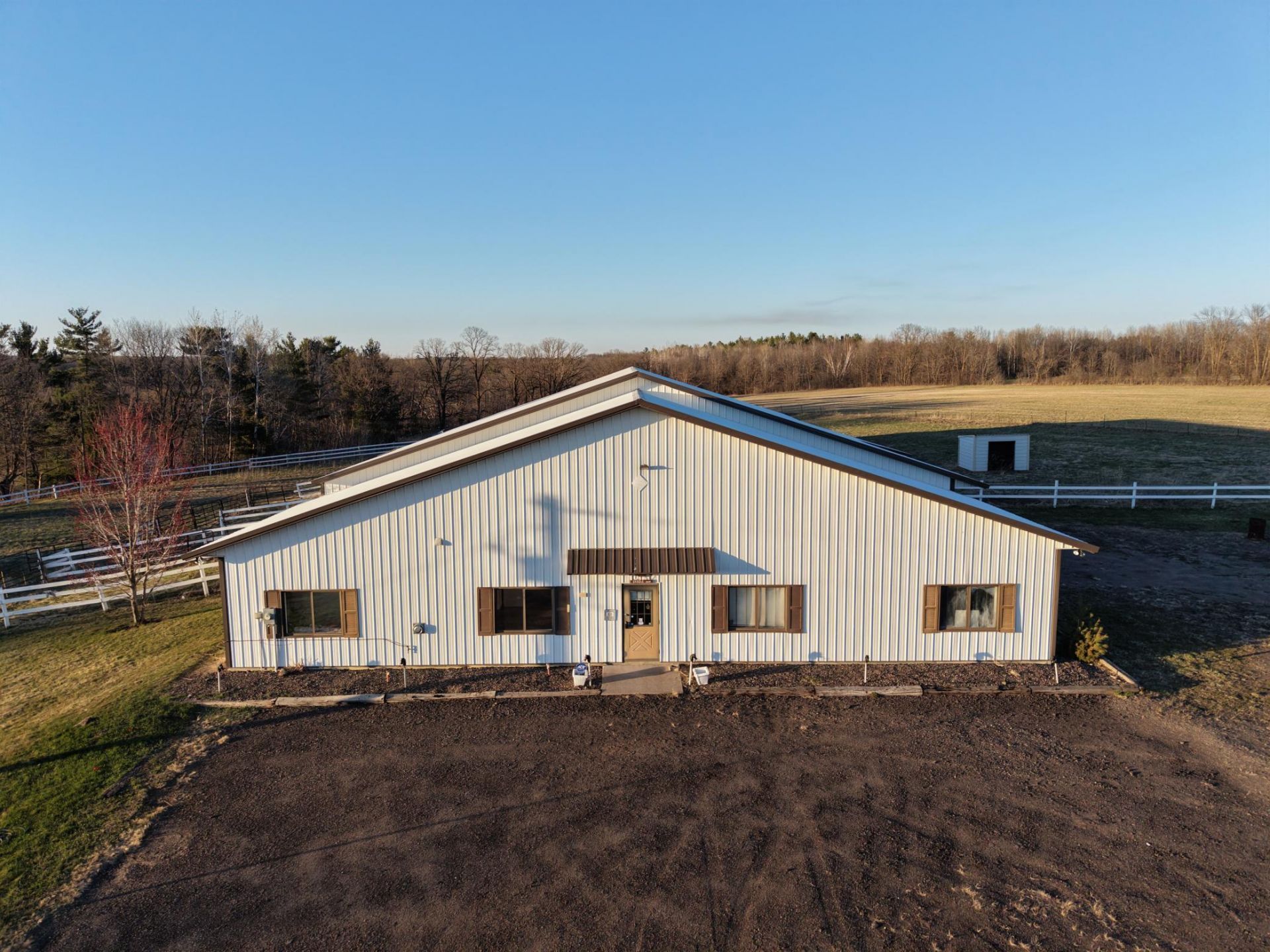 Country Living Horse Ranch Hobby Farm Enterprising Entrepreneur. Welcome to the hobby farm of your dreams ? where horses, hay fields, and happy living come together on over 26 gorgeous acres overlooking the Rum River. This custom-built rambler is all about one-level living done right...3-Bdrm, 3-Bath, 3-Garage, 3939-finished sq ft. Panoramic views greet you from every window, and the oversized kitchen flows effortlessly into both formal and informal dining areas with charming built-ins. The living room features a cozy gas fireplace that practically begs you to settle in with a good book. The main floor primary bedroom suite comes with a spacious walk-in closet and a bathroom to relax and enjoy.Step outside onto the massive maintenance-free Trex deck and take in sweeping panoramic views of the river and fenced pastures. Not a bad spot for morning coffee, if you ask us. Downstairs, the finished walkout level delivers a huge family room, gaming area, two generous bedrooms with walk-in closets, bathroom, and plenty of storage in the large utility room. Now for the real magic ? huge pole building, fully equipped indoor riding arena, 6-stables, fenced pastures, hay fields, a studio apartment, workshop and indoor garages, making this a true equestrian paradise. Whether you're running a horse hobby farm or entire operation, you'll just love the wide open spaces, that this property provides. Located just minutes from Milaca with easy access to schools, shopping, and community parks, this riverfront horse ranch checks every box. Come see it today and fall in love!