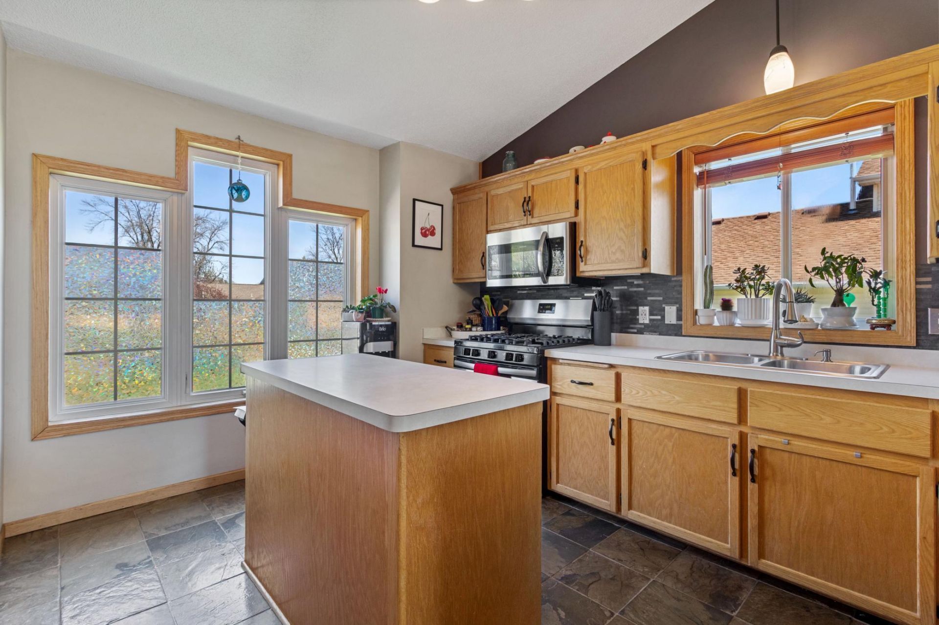Location, location. Beautiful entry, with room to move about, including a full closet and built-in sitting storage bench. The kitchen, dining and upper living room have an open concept feeling, flowing naturally from one room to the other, yet still managing to feel separate. Tall windows with natural light filling the whole area. Tile floors, SS appliances, solid wood built-ins make the space feel like home. Walk out to the deck overlooking the fenced backyard or grab a beverage from the family room wet bar and relax in front of the fireplace. Need an office? A workout room with a rubber floor and laundry nearby. Whatever you may need this space for, options are open. This home is situated in a little development, minutes from everything Forest Lake has to offer, including the schools. Quick access to the freeway.