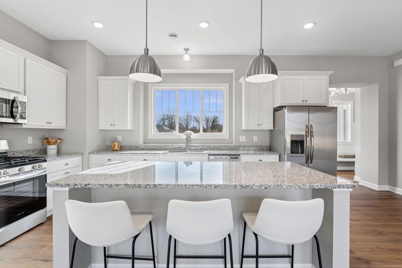 Set on a spacious half-acre lot, this beautiful new construction home offers the perfect balance of peaceful country living with convenient access to Zimmerman and Elk River. The open Designer Series floor plan features custom cabinetry, granite countertops, LVP flooring, enamel millwork, oversized windows, a 7-foot island, and a cozy fireplace.Upstairs, you'll find three bedrooms, including a private primary suite with dual vanities and a walk-in closet. The finished lower level provides additional living space with a large family room, fourth bedroom, and full bathroom?ideal for guests or flexible living needs.Thoughtfully designed with high-end finishes throughout, this home combines comfort, style, and functionality in every detail.