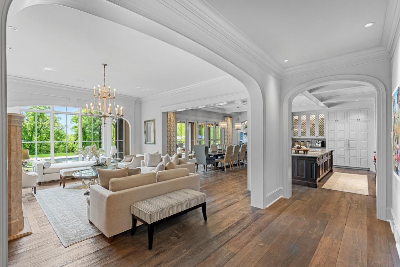 Unparalleled Sunfish Lake residence thoughtfully designed by Peter Eskuche and meticulously built by Nor-Son! This stunning home offers an open flowing floorplan showcasing endless nature views at every turn. Enjoy the great room with vaulted ceiling + wood beam accents; spacious gourmet kitchen with dining area & wall of folding glass doors that open to the porch (phantom screens + heaters) and out to the pool. The prep kitchen is ideal for entertaining with additional appliances and window that opens to the bar and great room! Main-level primary suite with spa-like bath (steam shower, heated floor, fireplace) and upper-level offering three junior suites. The lower-level features an additional guest suite; theater area; wet bar; exercise room and sport court! Tranquil backyard retreat with saltwater pool and built-in firepit all surrounded by soaring mature trees. Additional features: Heated extra deep 3-car garage; space for a golf simulator and whole house generator. The carriage house offers a family room, game area, beverage bar, fireplace, ½ bath and additional 4-car heated garage! Private 10.5 acre setting adjacent to Musser Park for additional privacy. Ideally located just minutes to MSP International Airport, the Vikings facility, shops and restaurants!