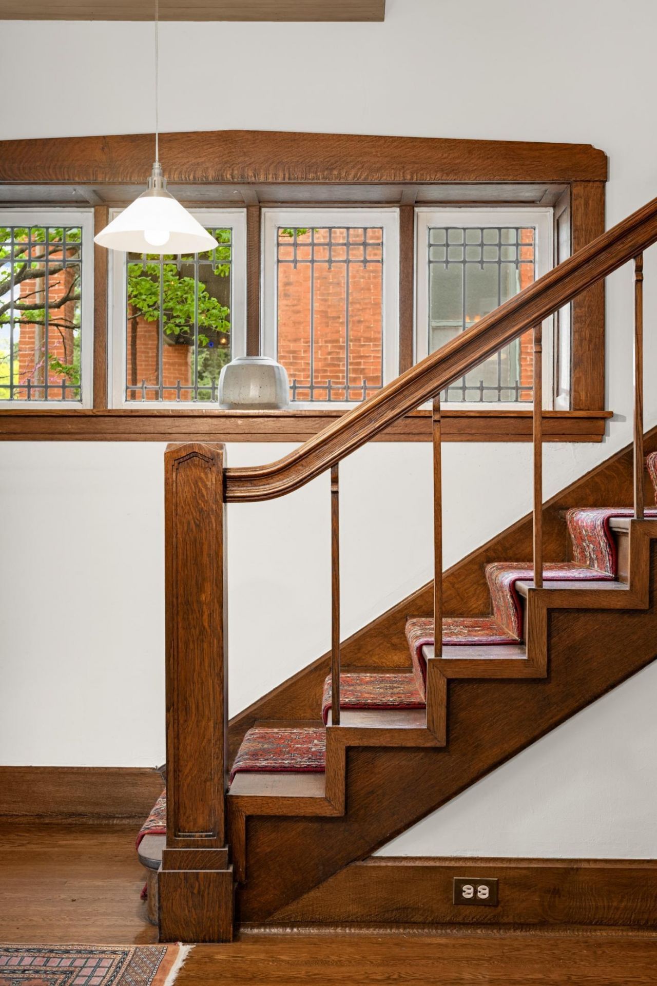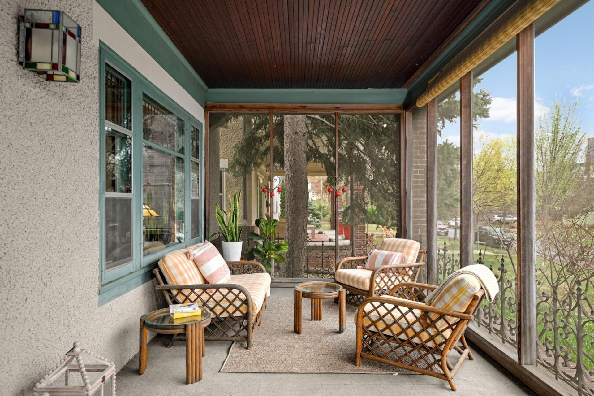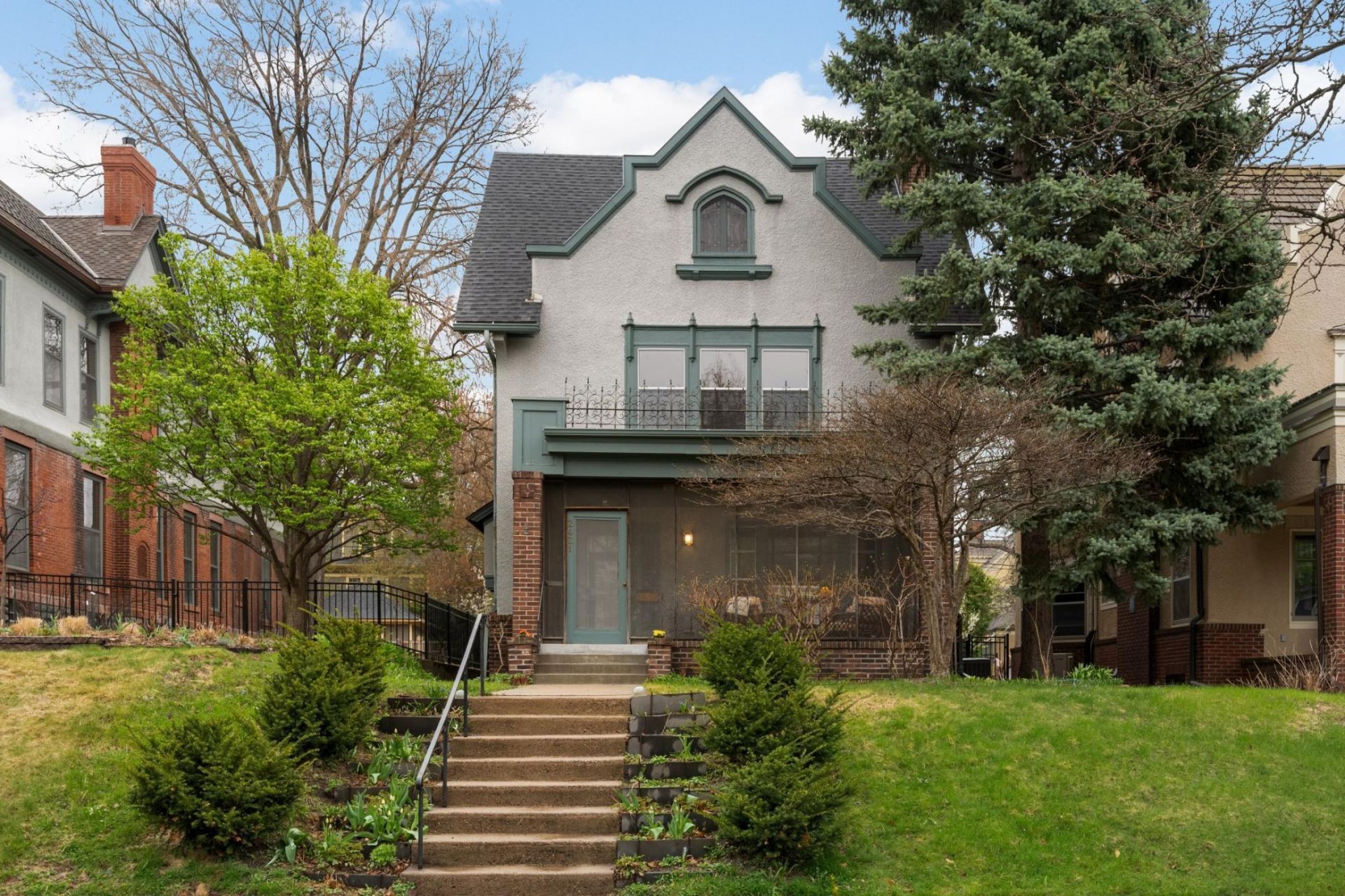 Character-filled Mission Revival home in historic East Isles features leaded windows, rich woodwork & gleaming wood floors throughout. The main floor hosts a charming front porch, spacious living rm w/gas fireplace, formal dining rm w/paneled walls & orig built-in buffet, an architecturally designed mid-century kitchen w/informal dining & views of the garden. The perfect place to bird watch! A convenient powder rm completes the main flr. The 2nd level offers 3 bedrms, an office/sunrm, & full bath. The recently refreshed 3rd floor is icing on the cake w/ great views, gorgeous custom stained glass, refinished wood flrs, & a 4th bedrm. The basement is clean w/solid mechanicals. Pride of ownership shines through! *Home prof measured by 3rd party. We used these measurements for the room sizes and public tax records for total square footage.