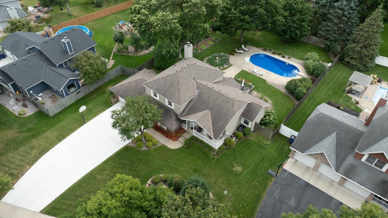 Welcome to this beautifully updated modified two-story in The Colony, just steps from the YMCA, Whitney Center and walking trails. With nearly 3,000 finished square feet, this home offers plenty of space, natural light, and a layout that simply works. Raised panel doors throughout add a classic, finished touch. The kitchen features granite countertops, stainless steel appliances with a gas stove, and hardwood floors. You'll enjoy both formal and informal dining spaces, plus a bright living room, a cozy family room with a beautiful wood-burning fireplace, and a lower-level rec room for extra hangout space. There are 4 bedrooms total, including 3 on the upper level and one on the main floor. The primary suite has a full bath and double closets. The home includes 3 bathrooms, a finished laundry room, and great storage throughout. Updates include a furnace and central air (Heat Pump) in 2021, in 2023 a new water heater, carpet and concrete driveway. There's also a large walk-in pantry, central vacuum, new pool liner last year, pool heater new in 2022, sprinkler system and a spacious triple garage. The roof and steel siding were replaced in 2011. Outside is where this property really shines?a .41-acre landscaped lot with an amazing heated, in-ground pool, perfect for summer fun and relaxing evenings.