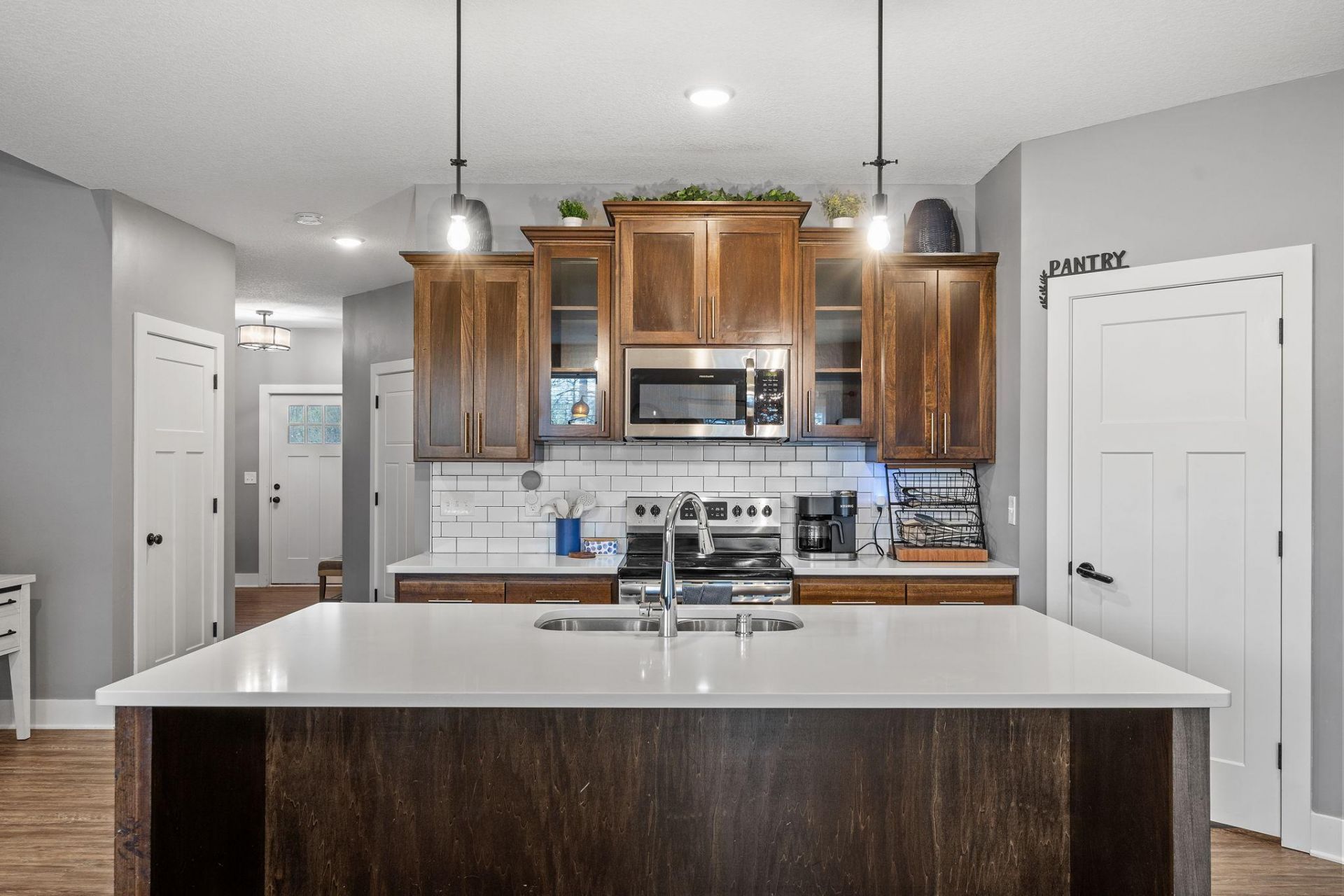 Only available due to relocation, this move-in ready and thoughtfully enhanced two-story home offers a private wooded setting and an upper-level layout that is hard to find. Set on a peaceful lot with mature trees, this home delivers the privacy and space you want while still keeping you close to Zimmerman conveniences.The main level features an open-concept design with hard surface flooring, custom cabinetry, soft-close doors and drawers, and a bright, functional layout made for everyday living. The expansive kitchen includes granite countertops, stainless steel appliances, and an oversized walk-in pantry.Upstairs, you'll find five bedrooms on one level, including a large primary suite with plenty of room to unwind.Thoughtful upgrades continue with solar, offering added efficiency and long-term value. With its generous floor plan, wooded privacy, upper-level bedroom layout, and proximity to Zimmerman, this home is a standout opportunity for anyone looking for space, comfort, and move-in ready convenience.