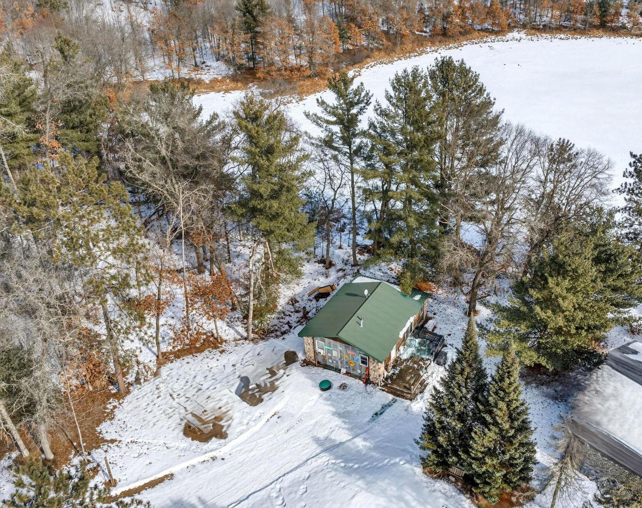 Discover the enchanting allure of our four-season remodeled cabin perched near water's edge in Hidden Bay on Lost Lake, offering a perfect blend of rustic charm and modern comfort. Spanning 18 acres of picturesque wilderness and shoreline, this newly updated, fully furnished lake cabin invites you to enjoy serene waterfront living. Marvel at the crisp, updated interiors, (new well, windows, plumbing and more) featuring a stylish kitchen with elegant cabinets, a breakfast island, and state-of-the-art appliances. Cozy up by the fireplace in the open-plan living area, ideal for relaxation after a day of adventure. While the front seasonal porch awaits your personal touch, the allure of the waterfront beckons canoeing and kayaking fun. Share the charm with three other cabins on the 677 ft of nature's shoreline, available for rental options up to 14 consecutive days. Positioned opposite Burnett County land and a stone's throw from thrilling UTV/ATV trails, various recreational lakes, and lively bar/grills, this cabin isn't just a retreat; it's a lifestyle waiting to be embraced.