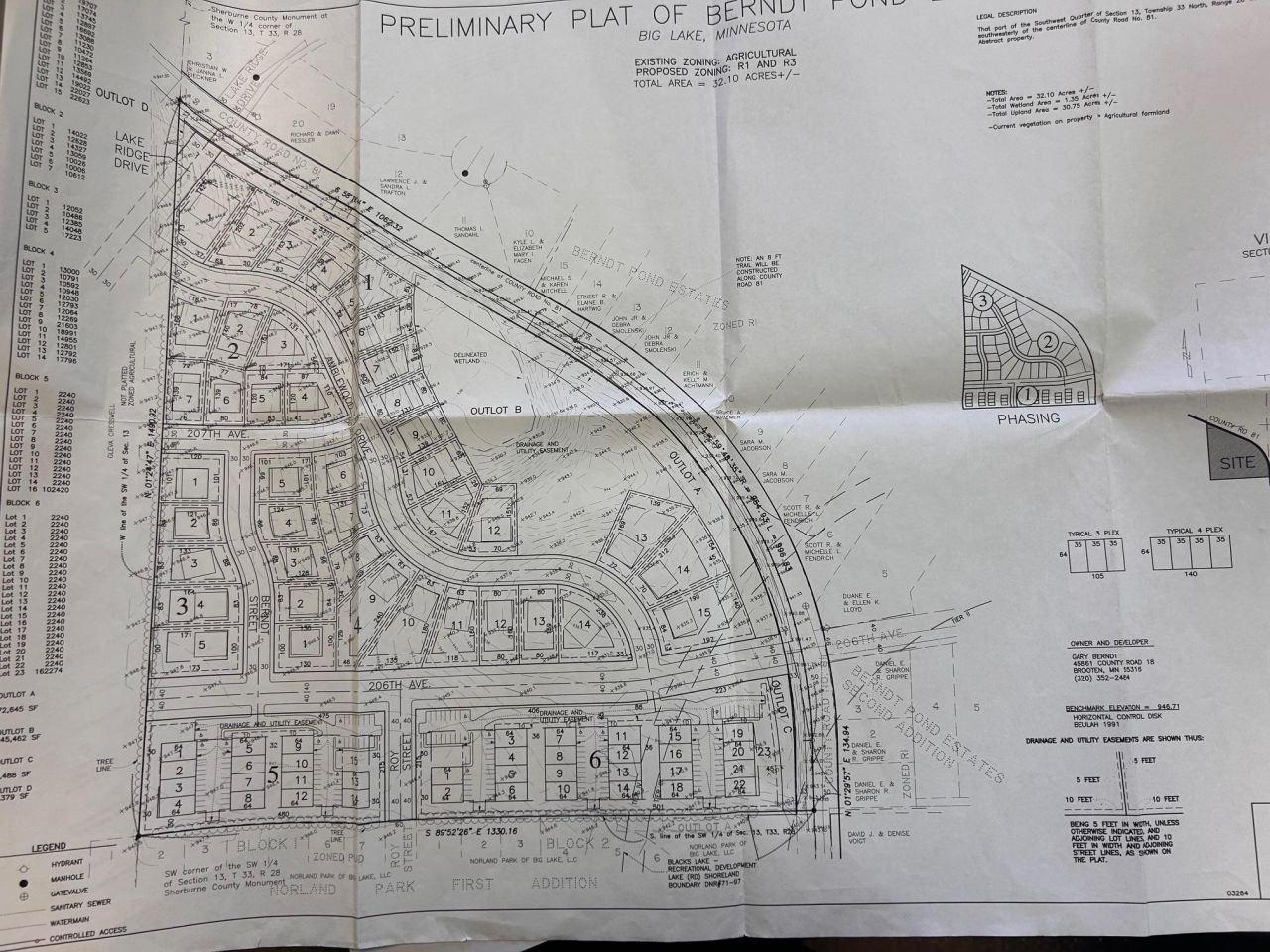 Residential Development Opportunity!! 33.02 acres in the townsite of Big Lake MN. The site is situated on County Road 81 about a 1/2 mile from US Hwy 10 providing easy access. Property is currently zoned R1 on appx 20 acres on the northern part and appx 10 acres on the southern part is zoned R3. This property is surrounded by residential developments and has a growing population. With the property being located only 30 minutes from St Cloud and around 45 minutes from the Twin Cities, it provides a desirable commute. City water & sewer, electric, gas & fiber optics are on the edge of the property and ready to be installed. A preliminary plat was done in 2006 with appx 80 lots on that plat. An updated Wetland Delineation is required (small pond on the property).