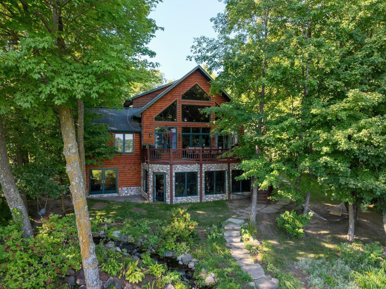 Phenomenal Northwoods chalet!! Discover your private Northwoods retreat with 380 ft of low elevation frontage on Long Lake, NW Wisconsin's top destination lake! This superbly designed 5-BR, 3-BA home spans over 4,900 sq ft and is perfectly tucked among mature trees for exceptional privacy. Inside, you'll find soaring wood ceilings, warm hardwood floors, 3 inviting fireplaces, and an open-concept layout ideal for gatherings. The custom built luxurious owner's suite features sweeping lake views, while the spacious lower level family room with theater seating, hot tub room, and sunroom provides the perfect setting for family and friends. Step outside to enjoy multiple deck spaces, a soothing waterfall, and a fire pit area. A heated, insulated 4-car garage ensures plenty of room for vehicles and toys. Long Lake offers 19 miles of excellent fishing, boating, scenic shoreline, sandbars, a full-service marina, & a boat-up golf course. Plus, the main ATV trail is just down the road.